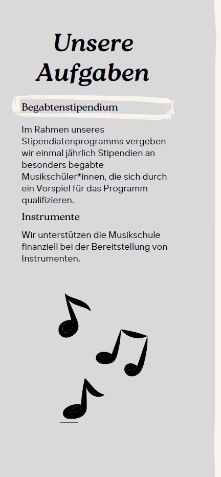 • die Musikschule beim Ankauf von Instrumenten und der Bereitstellung von Leihinstrumenten