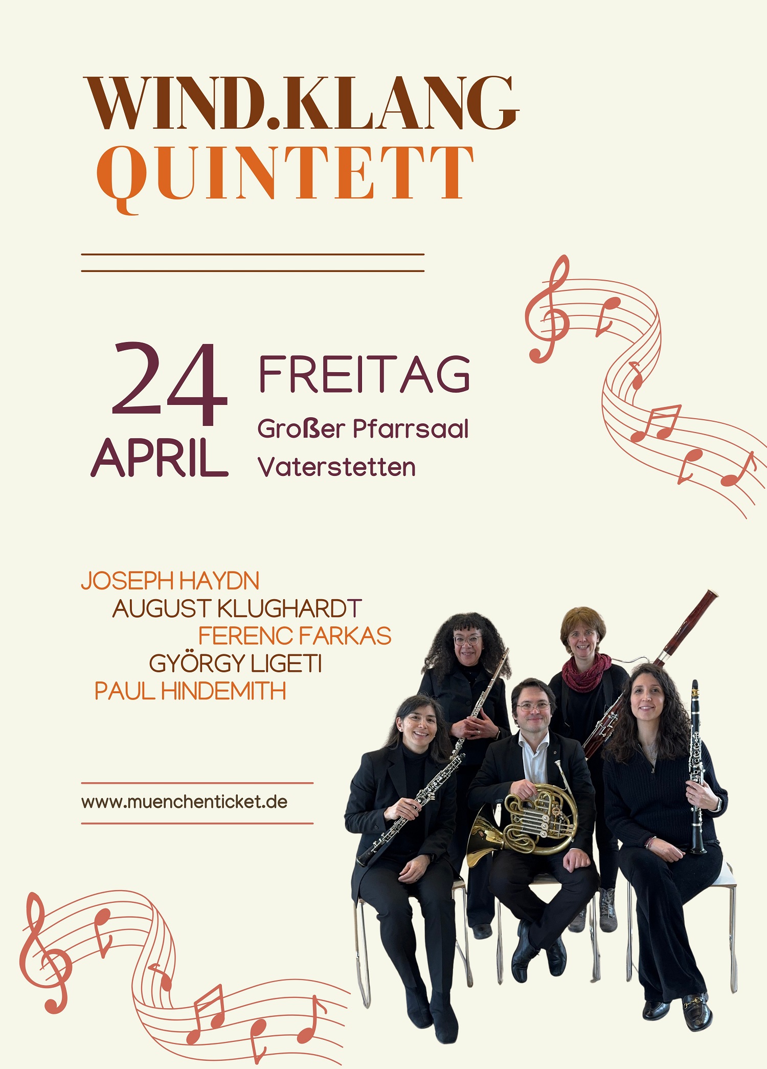Am 24. April um 19 Uhr kommt im Rahmen der Rathauskonzerte das Wind.Klang Quintett in den großen