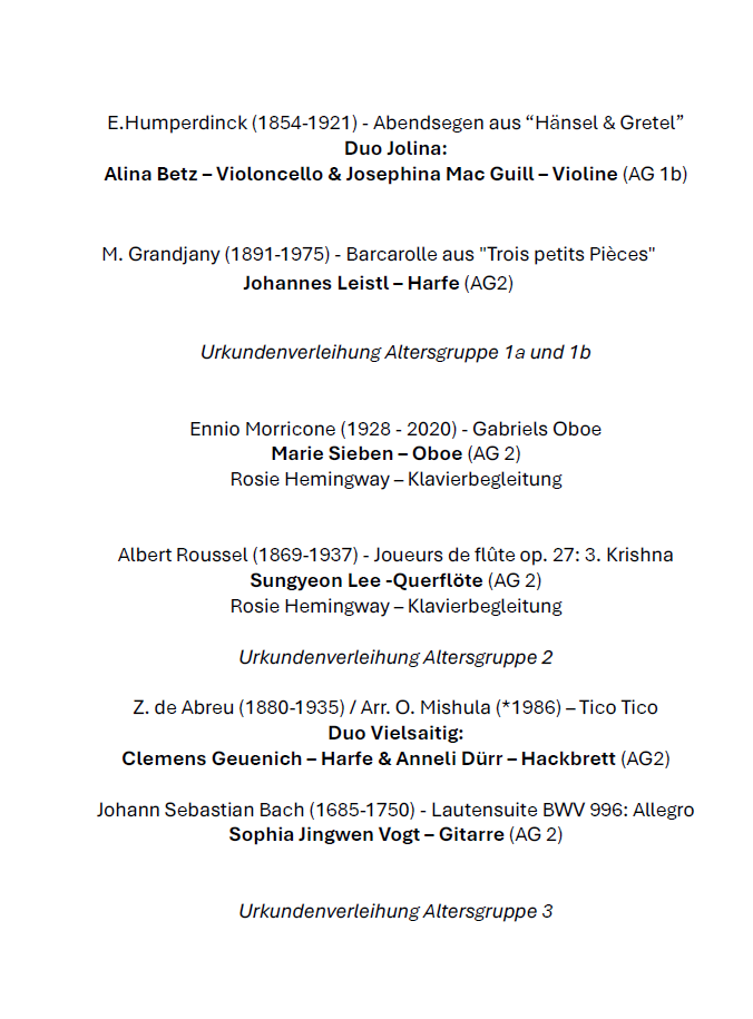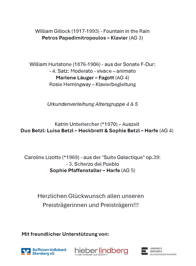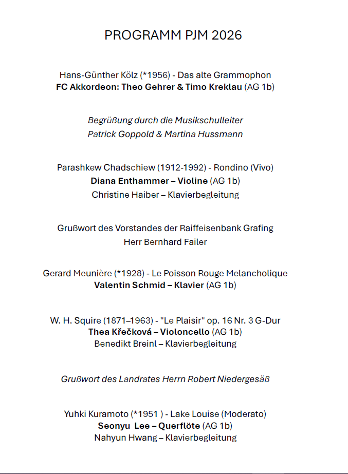 Ausgewählte Preisträgerinnen und Preiträger des PODIUM JUNGE MUSIK spielen bei dem festlichen Konzert am 22.März 2026 im Konzertsaal des Seniorenwohnpark Carecon in Vaterstetten.